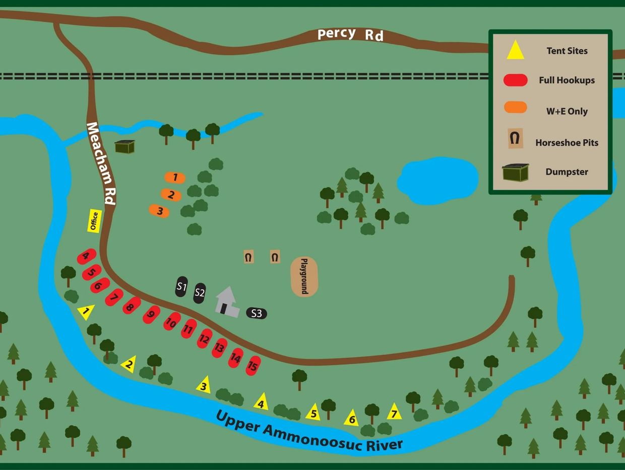 Our Camper sites are located in a field overlooking a scenic river. Each site has water hookup, a 30amp and 50amp electric plug-ins, a picnic table and a fire ring. Dump station with a mobile pickup service. Each Camper site is located at least 35 feet away from any other site providing plenty of room for your awning and outdoor living. We also have a central hot shower and multiple Porta-Potty's located throughout the campground.